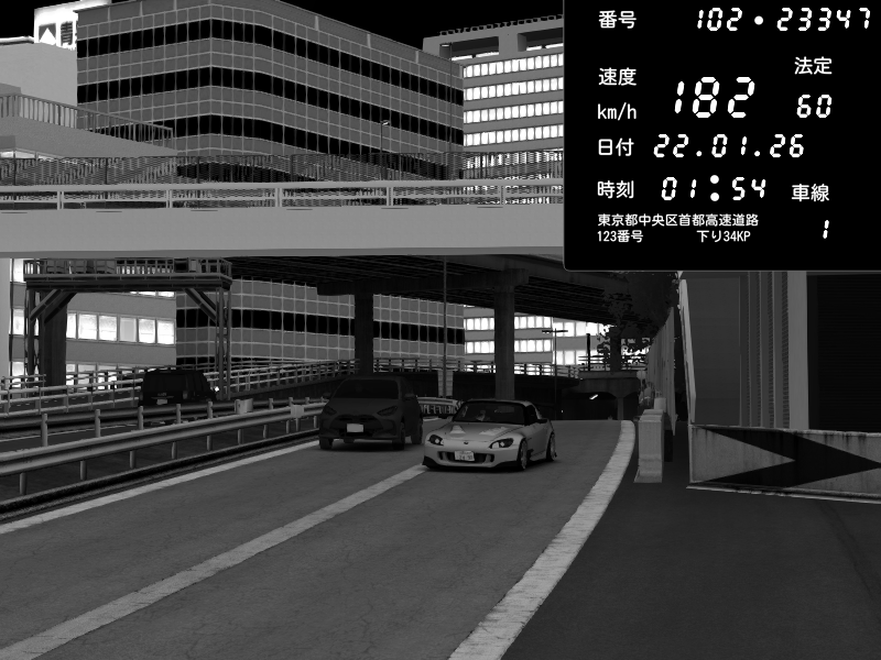 | 2026/01/22 01:54 | C1外回り 新富町 | 182 / 60 km/h | Honda S2000 (AP2 - Legendary) | CAPTURE |