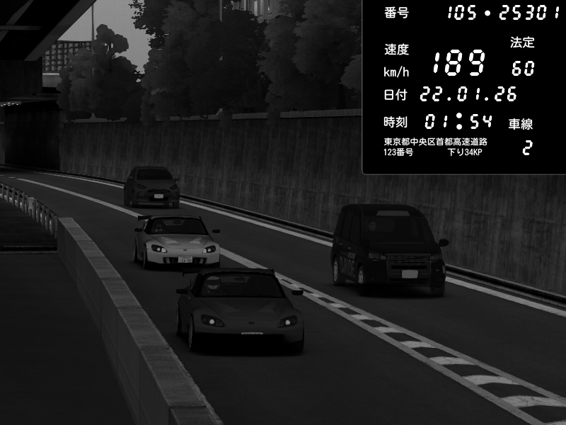 | 2026/01/22 01:54 | C1外回り 京橋 | 189 / 60 km/h | Honda S2000 (AP2 - Legendary) | CAPTURE |