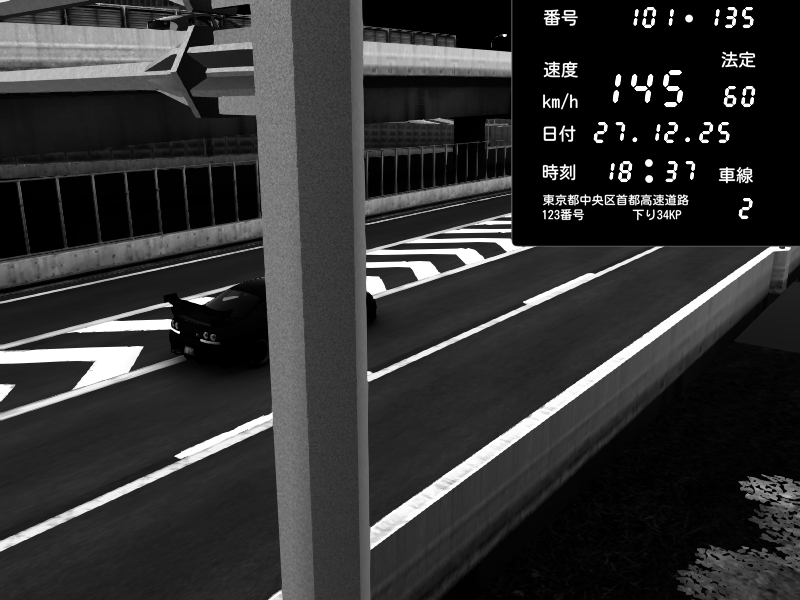 | 2025/12/27 18:37 | C1内回り 竹橋JCT | 145 / 60 km/h | Nissan Skyline GTR R33 (S3 - Wangan) | CAPTURE |