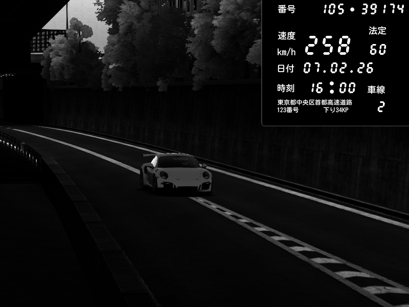 | 2026/02/07 16:00 | C1外回り 京橋 | 258 / 60 km/h | Porsche 911 GT3 RS | CAPTURE |