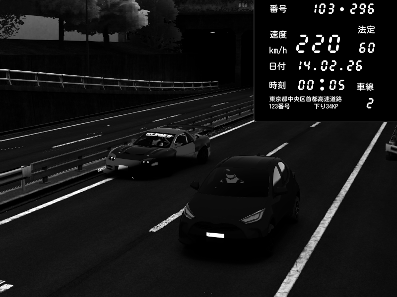 | 2026/02/14 00:05 | C1内回り 銀座 | 220 / 60 km/h | Pit Road M - Mitsubishi GTO Twin Turbo | CAPTURE |