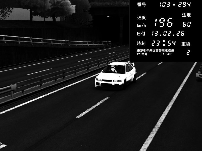 | 2026/02/13 23:54 | C1内回り 銀座 | 196 / 60 km/h | Mitsubishi Lancer Evolution V Wangan Spec | CAPTURE |