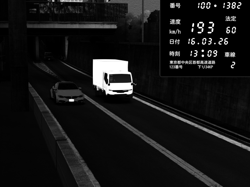 | 2026/03/16 13:09 | C1内回り 京橋 | 193 / 60 km/h | BMW M4 crash.Sp Varis Widebody | CAPTURE |