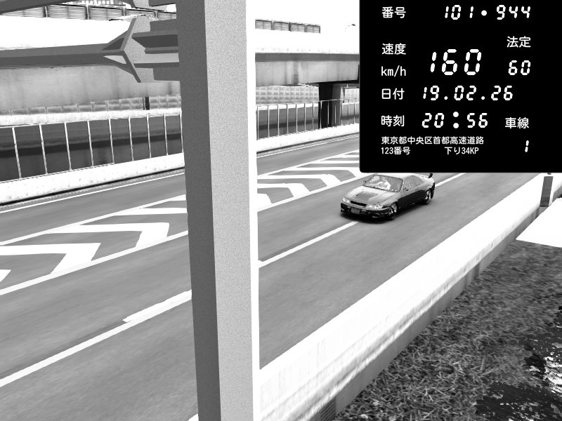 | 2026/02/19 20:56 | C1内回り 竹橋JCT | 160 / 60 km/h | Nissan Skyline GTR R33 (S3 - Wangan) | CAPTURE |