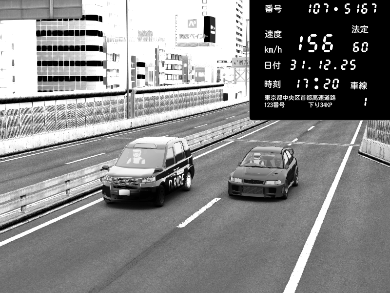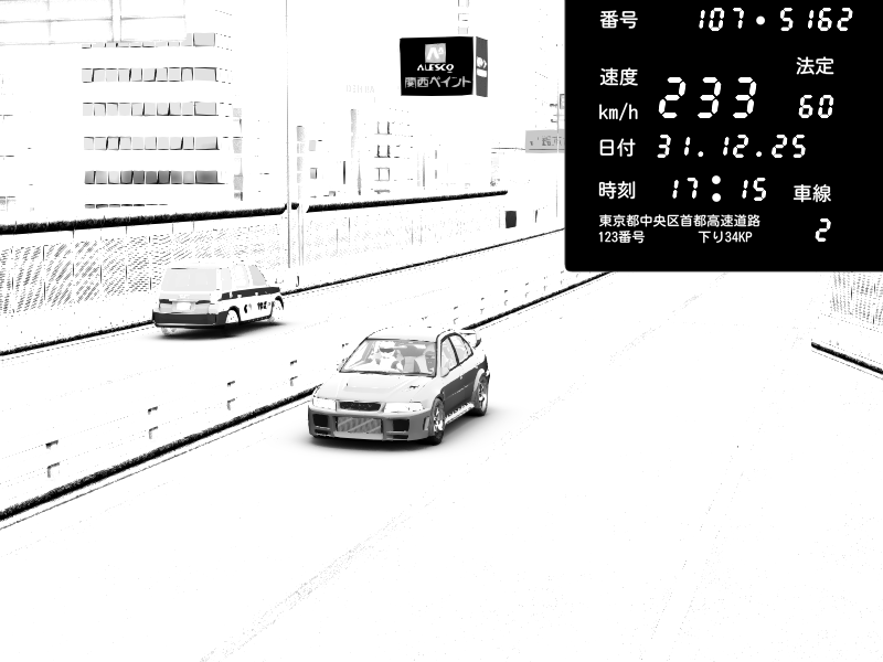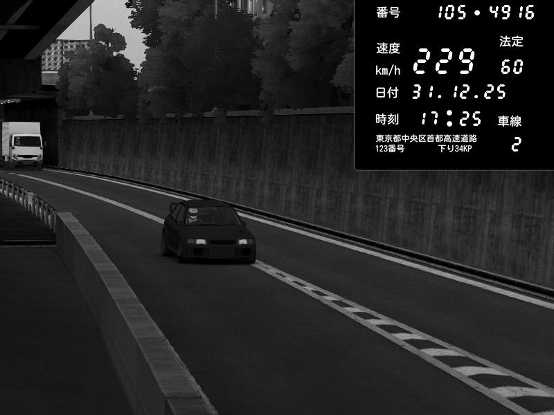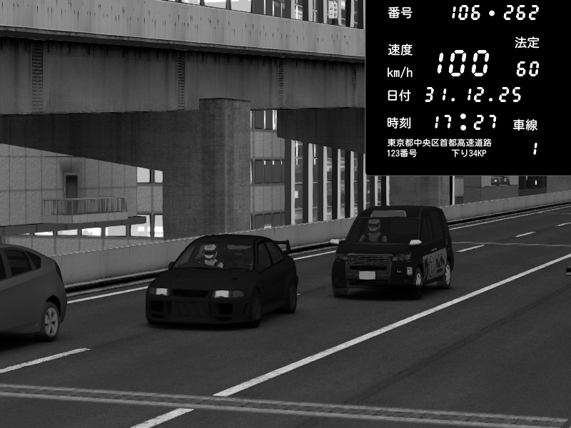 | 2025/12/31 17:35 | C1外回り 京橋 | 250 / 60 km/h | Mitsubishi Lancer Evolution V Wangan Spec | CAPTURE |