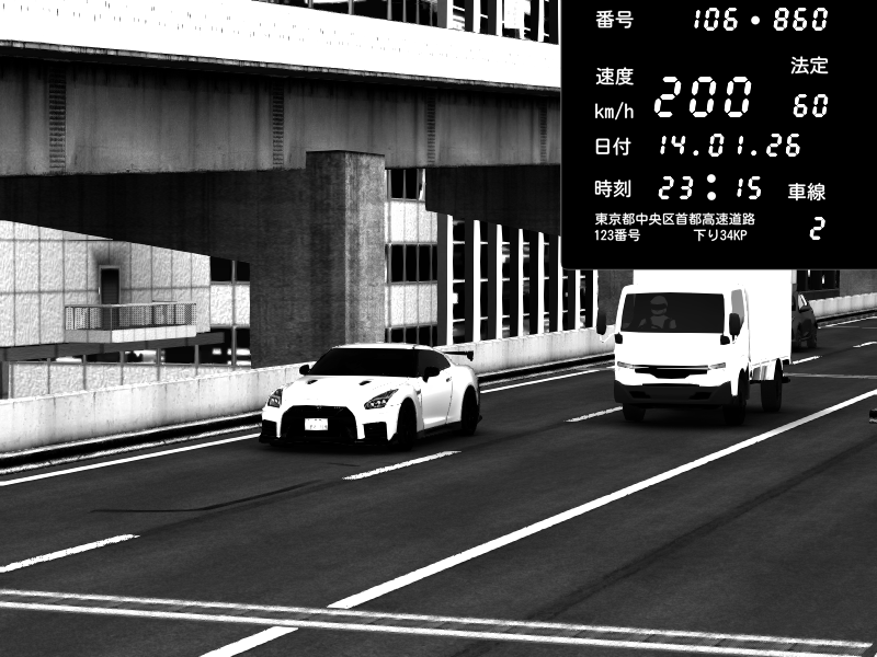 | 2026/01/14 23:13 | C1内回り 京橋 | 171 / 60 km/h | Nissan GT-R NISMO 2017 | CAPTURE |