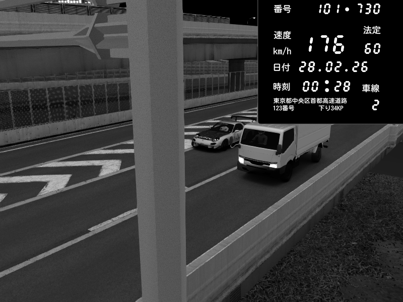 | 2026/02/27 23:49 | C1内回り 竹橋JCT | 172 / 60 km/h | Nissan Skyline GTR R33 (S3 - Wangan) | CAPTURE |