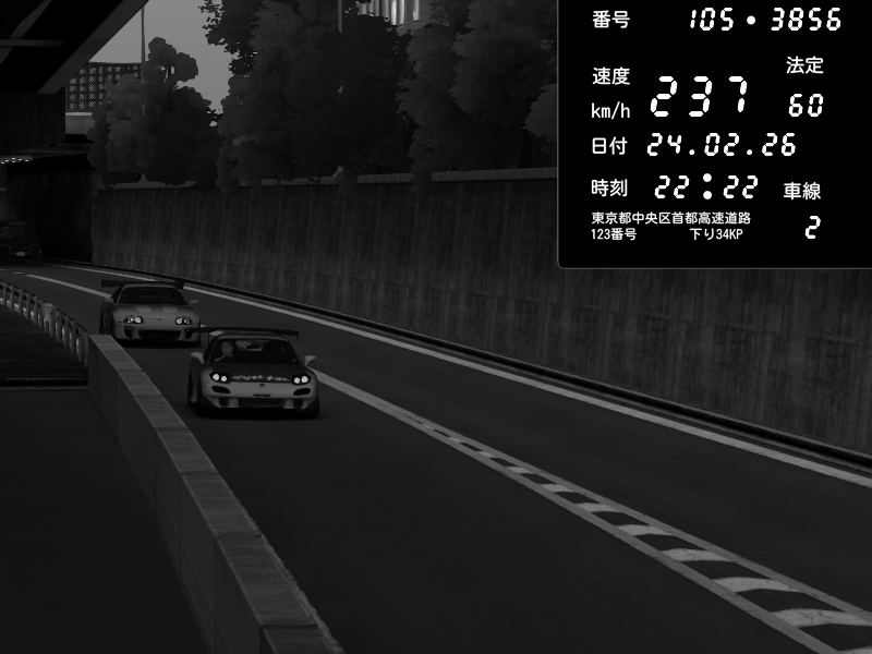| 2026/02/24 22:22 | C1外回り 京橋 | 237 / 60 km/h | Mazda RX-7 FD3S RE Amemiya | CAPTURE |
