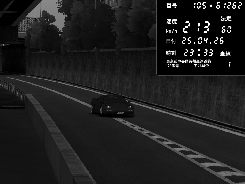 | 2026/04/25 23:33 | C1外回り 京橋 | 213 / 60 km/h | Honda NSX [NA1] PVLSX | CAPTURE |