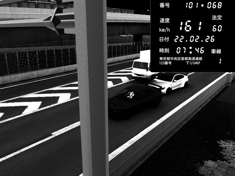 | 2026/02/22 08:22 | C1内回り 竹橋JCT | 174 / 60 km/h | Nissan GT-R NISMO 2017 | CAPTURE |