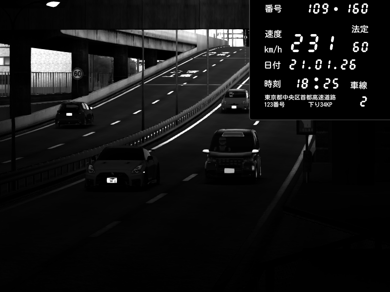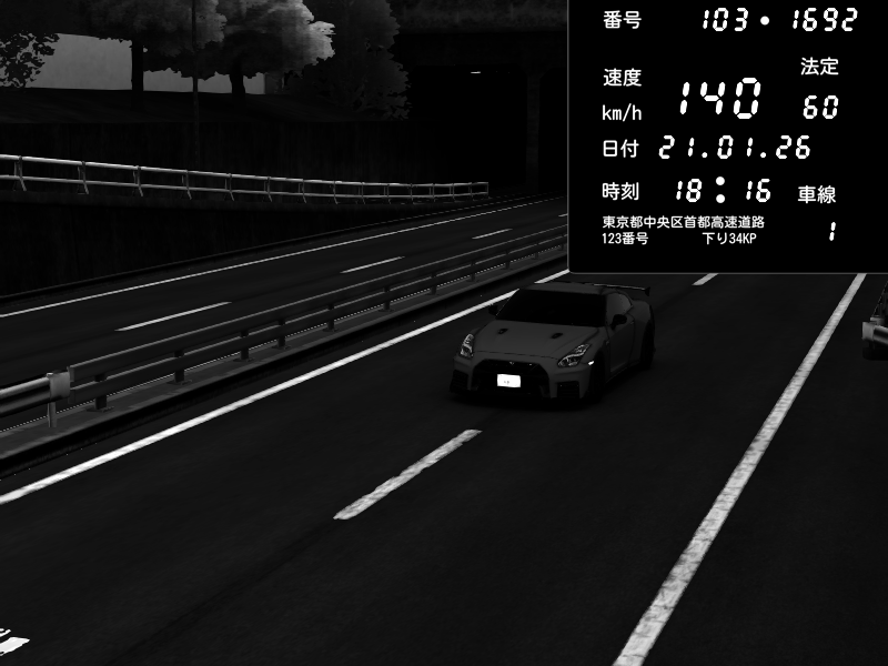 | 2026/01/21 18:16 | C1内回り 銀座 | 140 / 60 km/h | Nissan GT-R NISMO 2017 | CAPTURE |