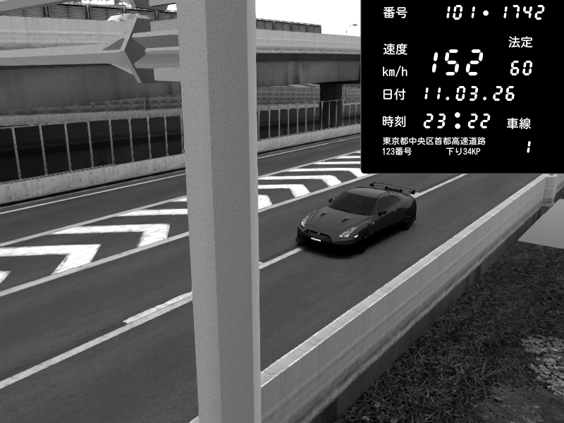 | 2026/03/11 23:22 | C1内回り 竹橋JCT | 152 / 60 km/h | Nissan GT-R NISMO 2017 | CAPTURE |