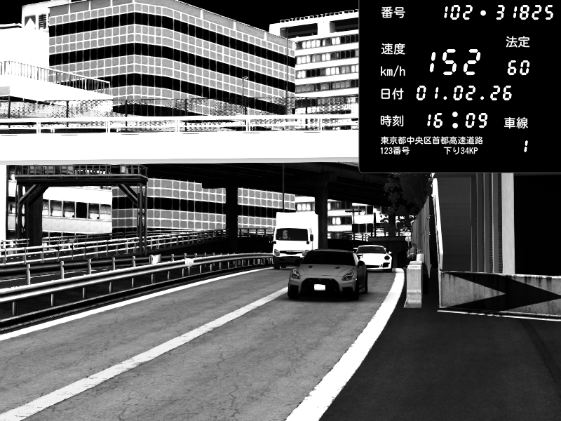 | 2026/02/01 16:02 | C1外回り 京橋 | 233 / 60 km/h | Nissan GT-R NISMO 2017 | CAPTURE |
