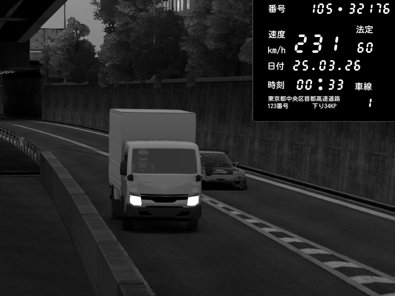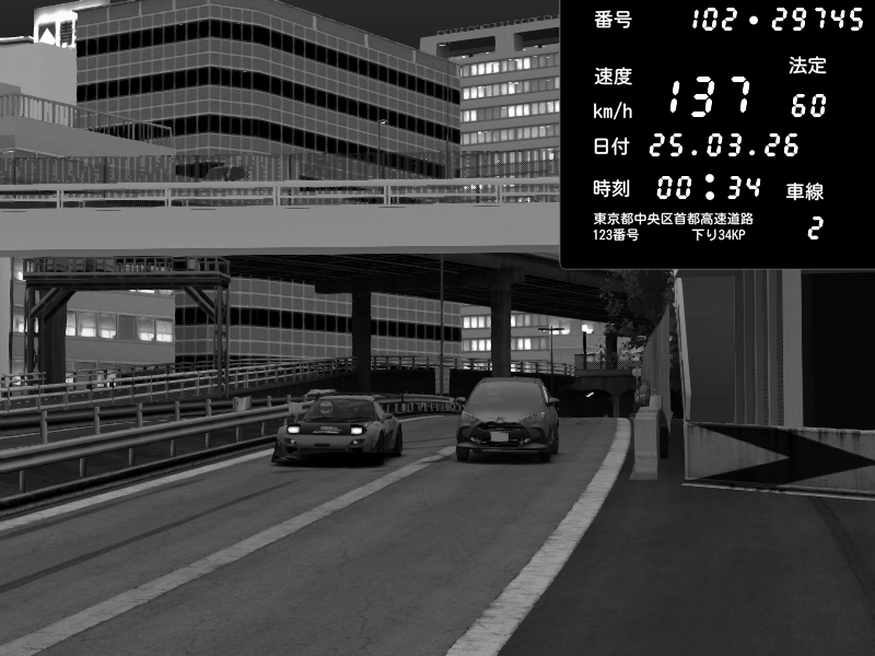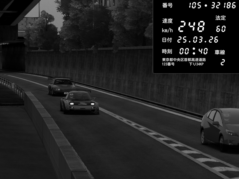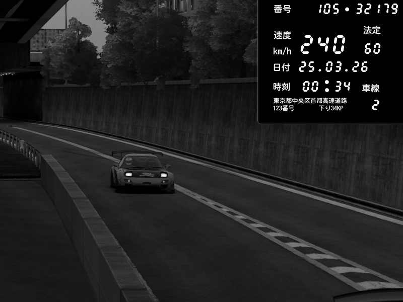 | 2026/03/25 00:30 | C1外回り 芝公園 | 240 / 60 km/h | Mazda RX-7 FD3S FEED Afflux GT3 | CAPTURE |
