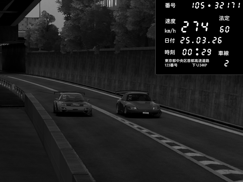 | 2026/03/25 00:29 | C1外回り 京橋 | 274 / 60 km/h | Mazda RX-7 FD3S FEED Afflux GT3 | CAPTURE |