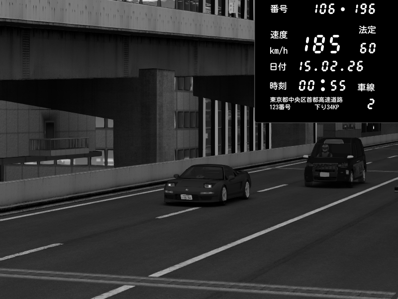 | 2026/02/15 00:36 | C1外回り 京橋 | 125 / 60 km/h | Honda NSX [NA1] PVLSX | CAPTURE |