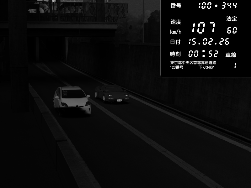| 2026/02/15 00:52 | C1内回り 京橋 | 107 / 60 km/h | Honda NSX [NA1] PVLSX | CAPTURE |