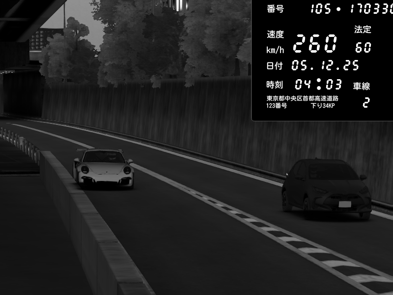 | 2025/12/05 04:03 | C1外回り 新富町 | 102 / 60 km/h | Porsche 911 GT3 RS | CAPTURE |