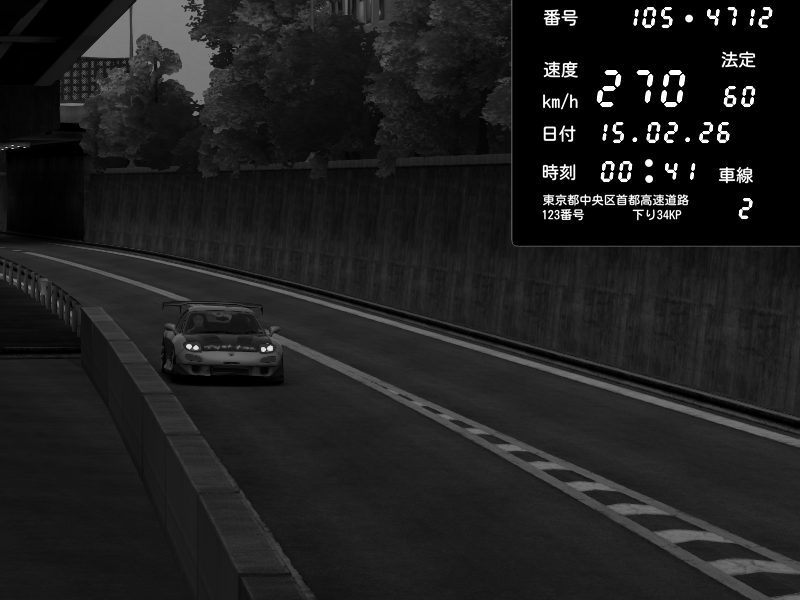 | 2026/02/15 00:41 | C1外回り 京橋 | 270 / 60 km/h | Mazda RX-7 FD3S RE Amemiya | CAPTURE |