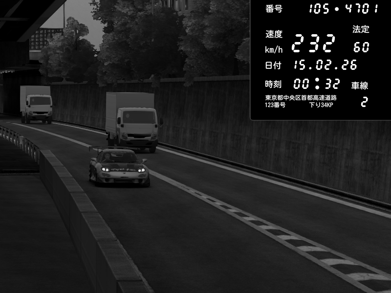 | 2026/02/15 00:32 | C1外回り 京橋 | 232 / 60 km/h | Mazda RX-7 FD3S RE Amemiya | CAPTURE |