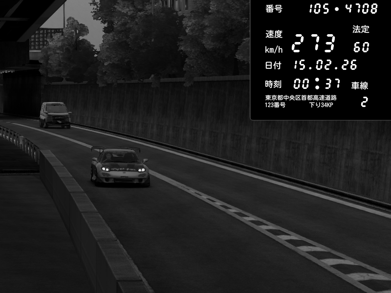 | 2026/02/15 00:37 | C1外回り 京橋 | 273 / 60 km/h | Mazda RX-7 FD3S RE Amemiya | CAPTURE |