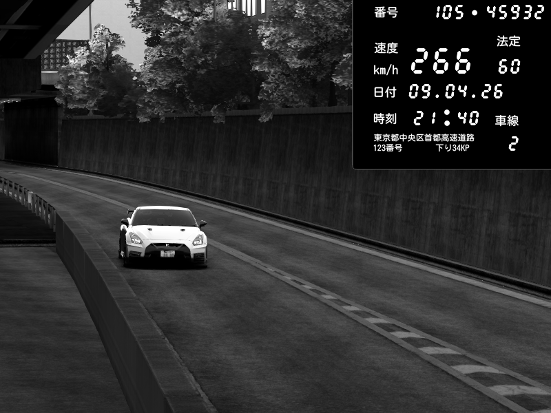 | 2026/04/09 21:40 | C1外回り 京橋 | 266 / 60 km/h | Nissan GT-R NISMO 2017 | CAPTURE |