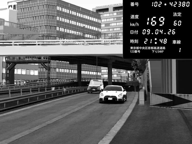 | 2026/04/09 21:48 | C1外回り 新富町 | 169 / 60 km/h | Nissan GT-R NISMO 2017 | CAPTURE |