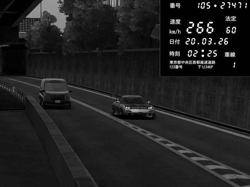 | 2026/03/20 02:25 | C1外回り 新富町 | 153 / 60 km/h | Mazda RX-7 FD3S RE Amemiya | CAPTURE |