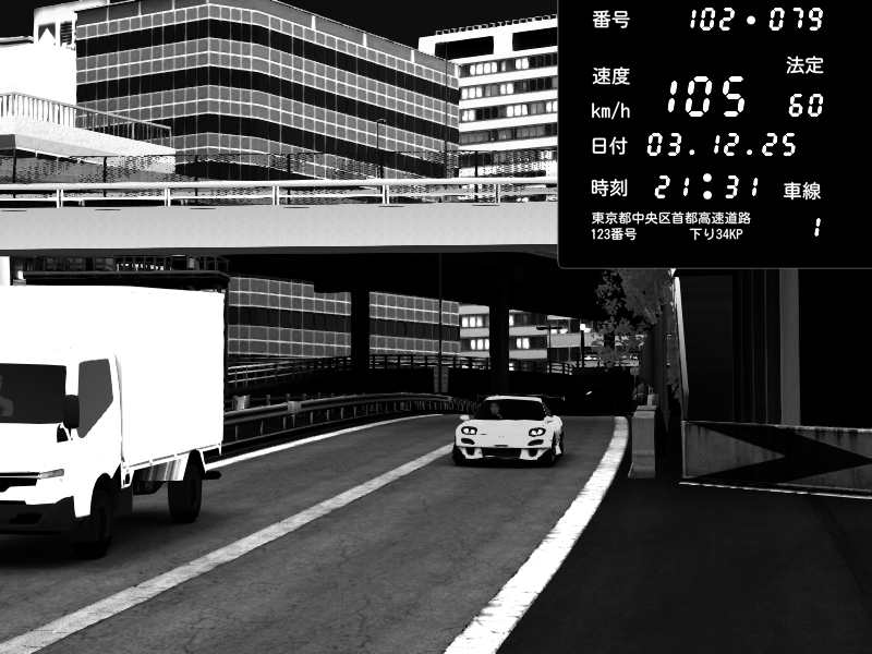 | 2025/12/03 21:31 | C1外回り 新富町 | 105 / 60 km/h | Mazda RX-7 FD3S RE Amemiya | CAPTURE |