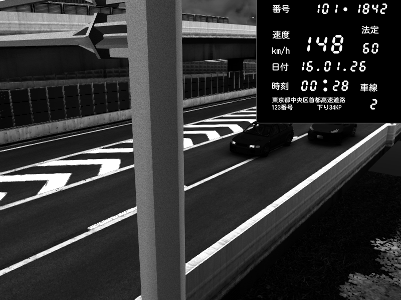 | 2026/01/16 00:28 | C1内回り 竹橋JCT | 148 / 60 km/h | Mitsubishi Lancer Evolution V Wangan Spec | CAPTURE |