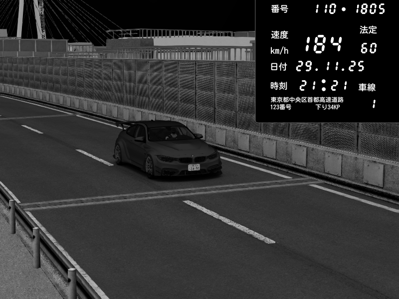 | 2025/11/29 21:21 | K1上り 羽田 | 184 / 60 km/h | BMW M4 crash.Sp Varis Widebody | CAPTURE |