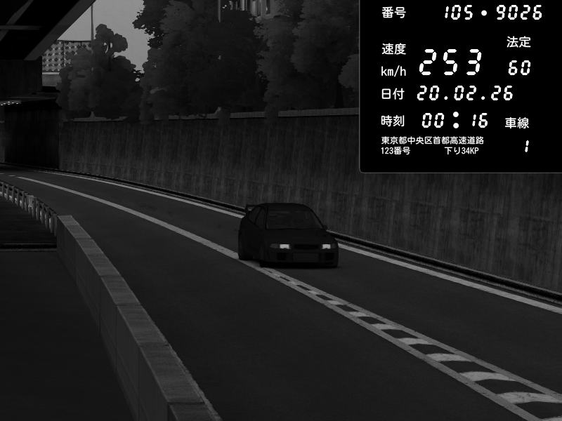 | 2026/02/20 00:16 | C1外回り 京橋 | 253 / 60 km/h | Mitsubishi Lancer Evolution V Wangan Spec | CAPTURE |