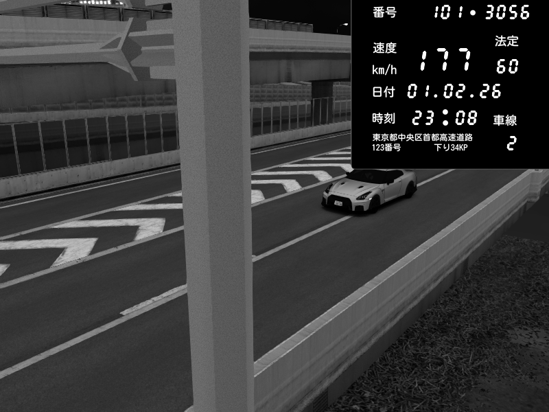| 2026/02/01 23:07 | C1内回り 京橋 | 166 / 60 km/h | Nissan GT-R NISMO 2017 | CAPTURE |
