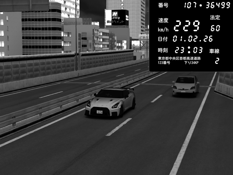 | 2026/02/01 23:10 | C1内回り 銀座 | 221 / 60 km/h | Nissan GT-R NISMO 2017 | CAPTURE |