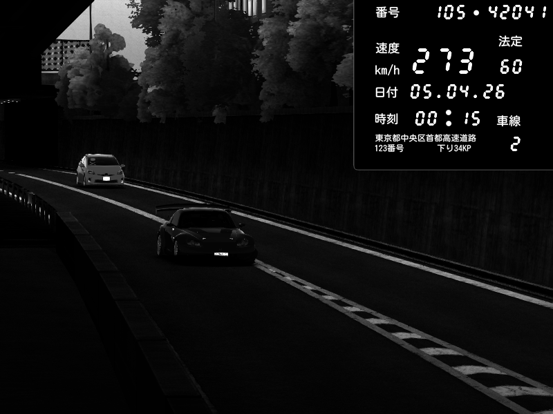 | 2026/04/05 00:13 | C1外回り 京橋 | 256 / 60 km/h | Honda S2000 Turbo GT1 Amuse (AP1) | CAPTURE |