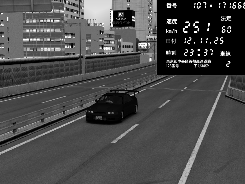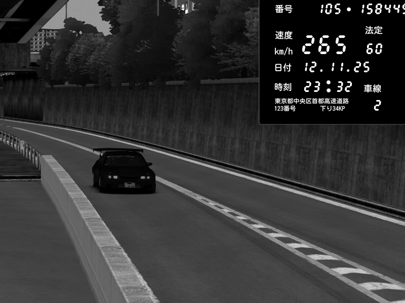 | 2025/11/12 23:32 | C1外回り 京橋 | 265 / 60 km/h | Nissan Skyline GTR R33 (S3 - Wangan) | CAPTURE |