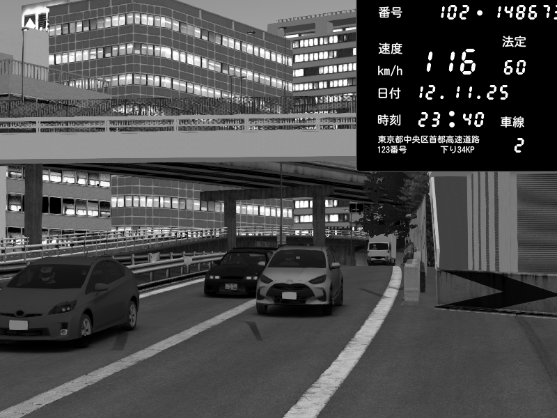 | 2025/11/12 23:40 | C1外回り 新富町 | 116 / 60 km/h | Nissan Skyline GTR R33 (S3 - Wangan) | CAPTURE |