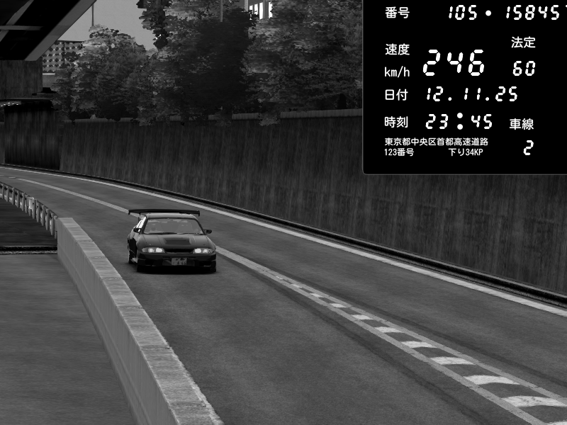 | 2025/11/12 23:37 | C1外回り 芝公園 | 251 / 60 km/h | Nissan Skyline GTR R33 (S3 - Wangan) | CAPTURE |