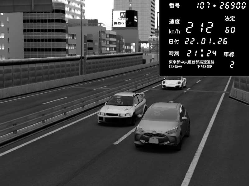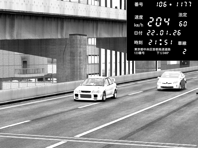 | 2026/01/22 21:41 | C1外回り 新富町 | 112 / 60 km/h | Mitsubishi Lancer Evolution V Wangan Spec | CAPTURE |