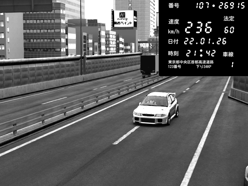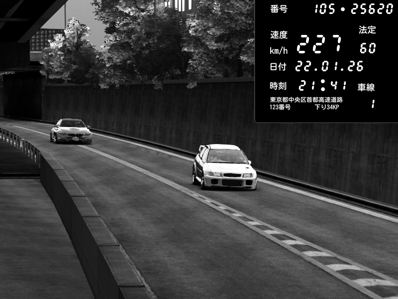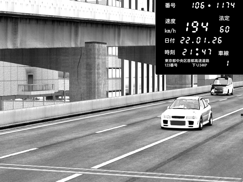 | 2026/01/22 21:41 | C1外回り 京橋 | 227 / 60 km/h | Mitsubishi Lancer Evolution V Wangan Spec | CAPTURE |