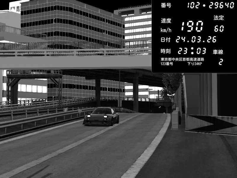 | 2026/03/24 23:08 | C1外回り 芝公園 | 240 / 60 km/h | Mazda RX-7 FD3S FEED Afflux GT3 | CAPTURE |