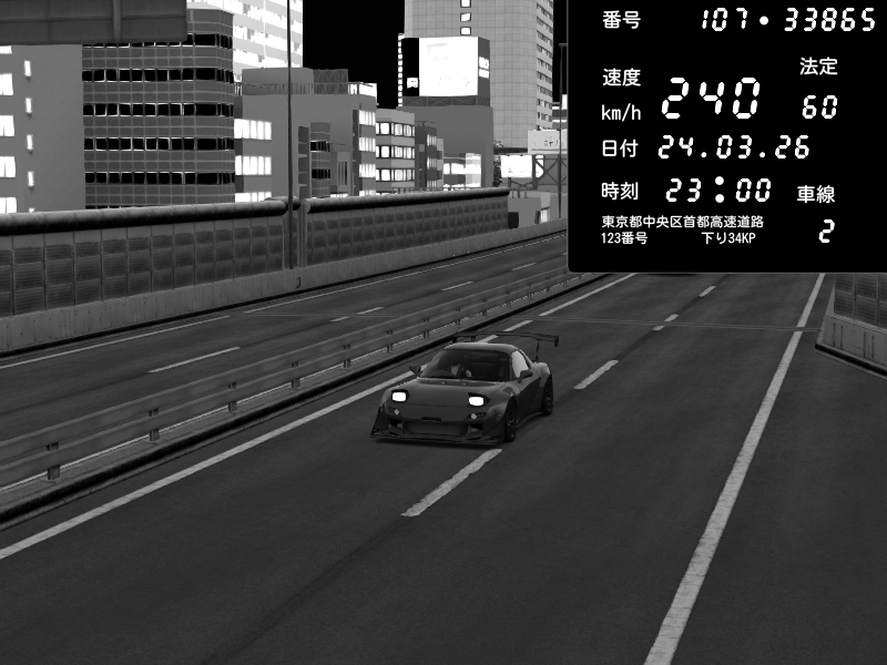 | 2026/03/24 23:00 | C1外回り 芝公園 | 240 / 60 km/h | Mazda RX-7 FD3S FEED Afflux GT3 | CAPTURE |