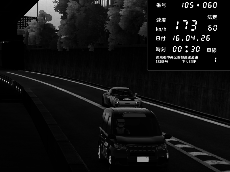 | 2026/04/16 00:30 | C1外回り 京橋 | 173 / 60 km/h | Mazda RX-7 FD3S FEED Afflux GT3 | CAPTURE |