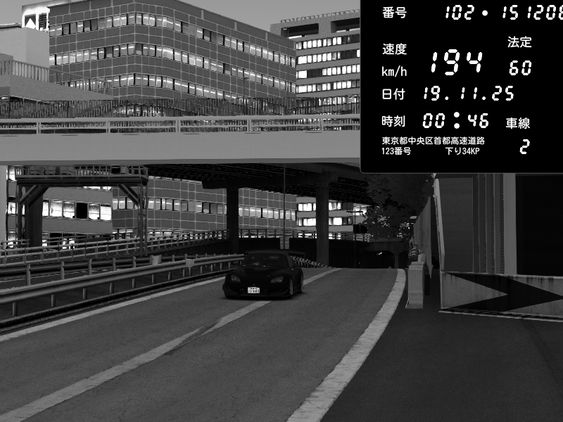 | 2025/11/19 00:46 | C1外回り 新富町 | 194 / 60 km/h | Honda S2000 Turbo GT1 Amuse (AP1) | CAPTURE |