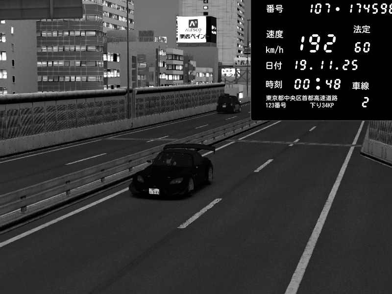 | 2025/11/19 00:29 | C1外回り 新富町 | 119 / 60 km/h | Honda S2000 Turbo GT1 Amuse (AP1) | CAPTURE |