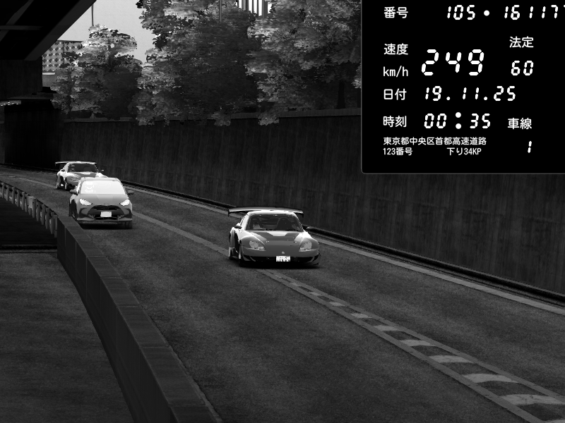 | 2025/11/19 00:35 | C1外回り 京橋 | 249 / 60 km/h | Honda S2000 Turbo GT1 Amuse (AP1) | CAPTURE |