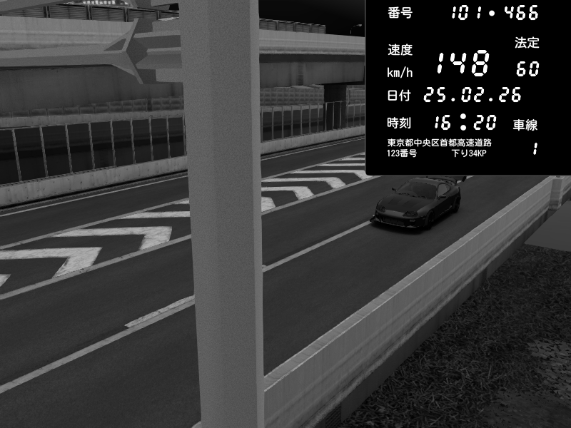 | 2026/02/25 16:20 | C1内回り 竹橋JCT | 148 / 60 km/h | Toyota Supra MKIV Time Attack | CAPTURE |