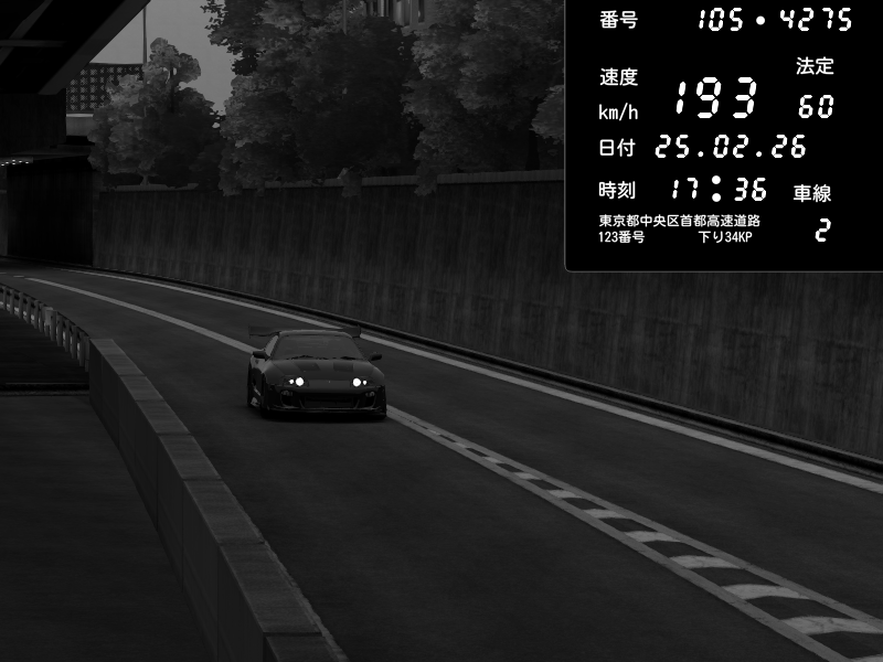 | 2026/02/25 17:36 | C1外回り 京橋 | 193 / 60 km/h | Toyota Supra MKIV Time Attack | CAPTURE |