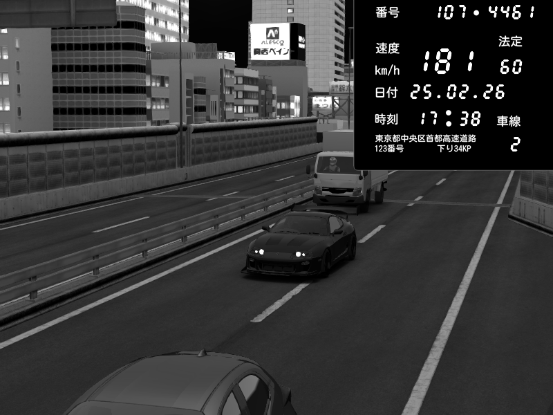 | 2026/02/25 17:36 | C1外回り 新富町 | 109 / 60 km/h | Toyota Supra MKIV Time Attack | CAPTURE |