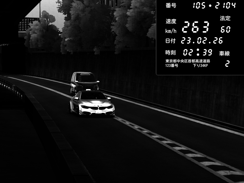 | 2026/02/23 02:39 | C1外回り 京橋 | 263 / 60 km/h | BMW M4 crash.Sp Varis Widebody | CAPTURE |